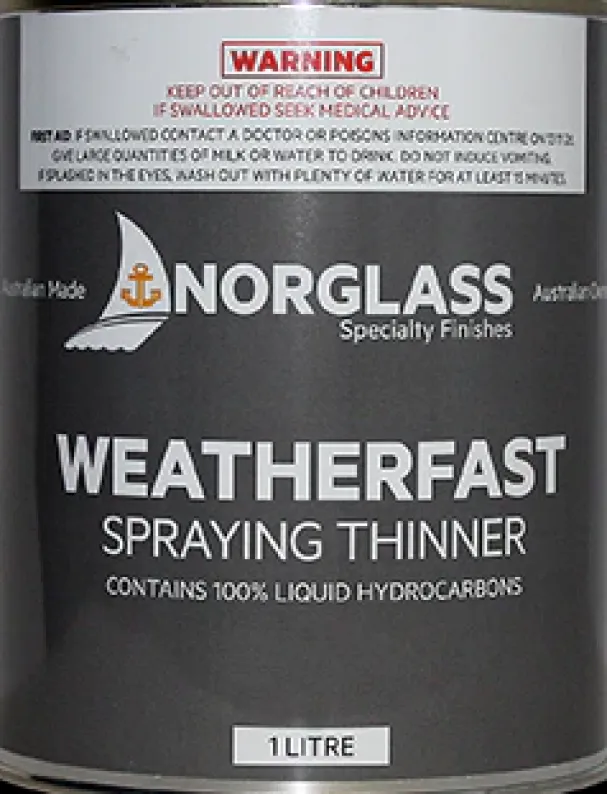 A blended thinner formulated for use with Weatherfast Enamel, Microshield, Weatherfast Poly Clear (gloss or satin), No Rust Primer, Weatherfast Deck Paint and Paving Paint.