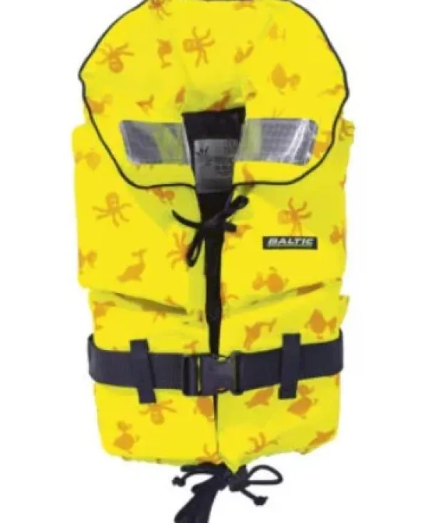 Fluro Print Children’s PFD has split front panels for a better fit. Equipped with whistle, lifting handle behind the collar, crotch strap, retro-reflective patches and high visibility outer fabric. The smallest size is equipped with a beaver tail crutch strap for extra comfort and safety.