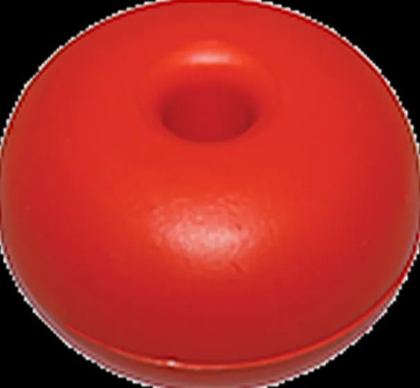 Small orange float for ski ropes or other lines. 75mm x 45mm with 10mm central hole.