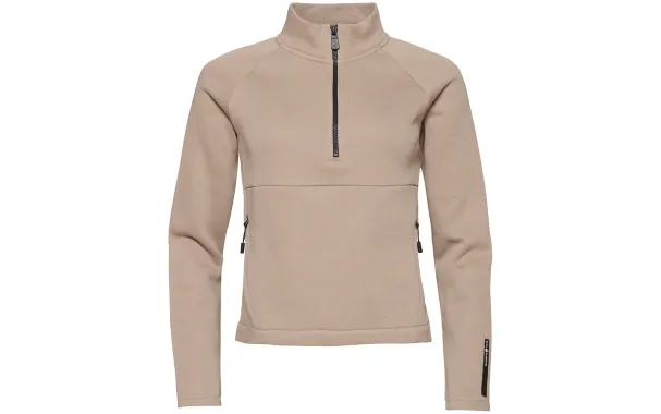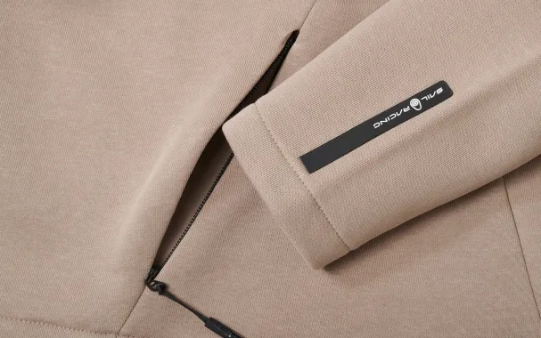 W Race T-Neck made in 80% cotton and 20% polyester. Pocket at front with zippers. Half zip at front. Rubber bloc logo at back yoke and silicon label at left sleeve end.