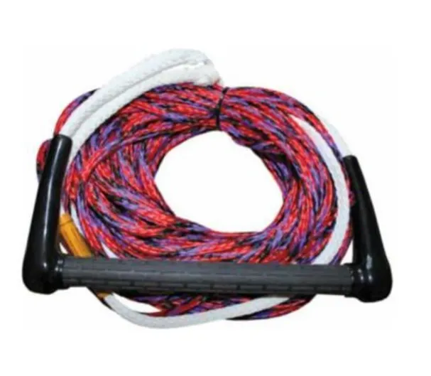 Quality ski line made with strong multi-coloured 8mm floating rope with cushioned aluminium core and textured easy grip handle with end caps and finger guards.