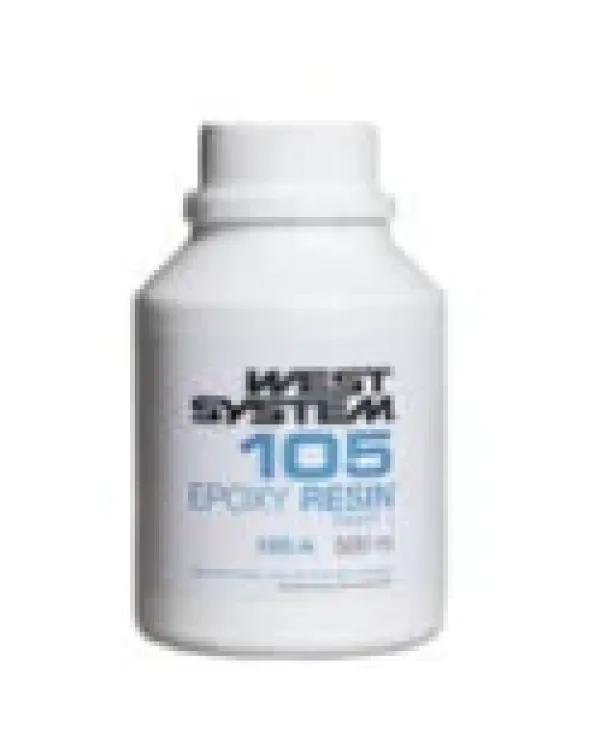 WEST SYSTEM 105 Resin is a low viscosity, solvent free liquid marine epoxy resin. Formulated for use with WEST SYSTEM hardeners, it can be cured in a wide temperature range to form a high-strength solid with excellent moisture resistance. 105 is designed specifically to wet -out and bond with wood-fiber, fiberglass, reinforcing fabrics and a variety of metals when mixed at the correct ratio with a WEST SYSTEM hardener. An excellent epoxy adhesive, 105 mixtures will bridge gaps and fill voids when modified with WEST SYSTEM fillers and can be sanded and shaped when cured. With roller applications, it has excellent thin-film characteristics to flow out and self-level.