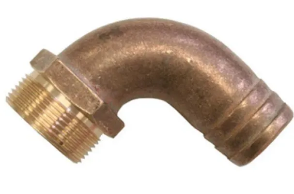 90° cast bronze elbow with a BSP thread one end and a barbed hose tail on the other enD