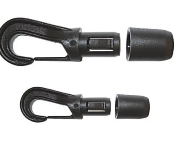 Strong black nylon hooks with a spring clip and easy quick connect feature to secure the shock cord in place.