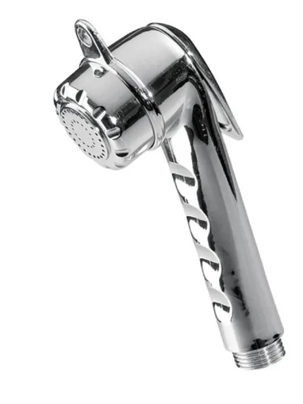 Stylish Italian made non-corrosive plastic shower heads with simple lever action. An integral eye is provided to hang the shower after use.
