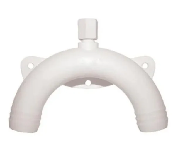 Simple valve system ensures water cannot siphon over inlet and discharge hose loops.