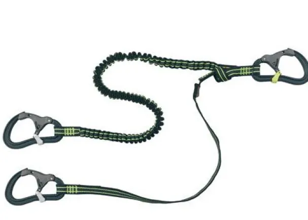 Tether with 3 double action safety hooks – Elastic + flat webbings – 2m +1 m